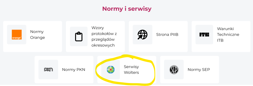 Należy zalogować się na Portal PIIB i wyszukać zakładkę Serwisy Wolters: